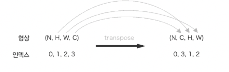 - forward 구현의 마지막에 출력 데이터를 transpose 함수를 사용해 적절한 형상으로 바꾼다.